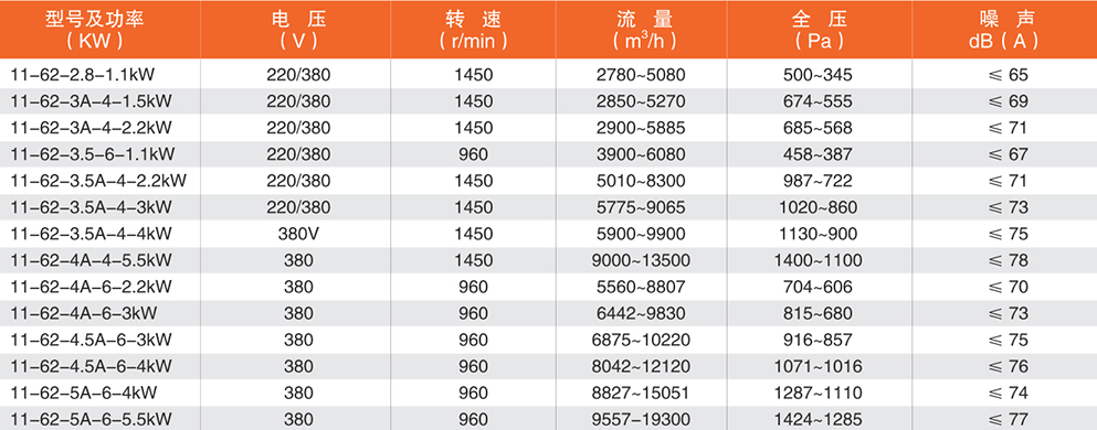 11-62型低噪声多翼离心式通风机是我公司为适应日益发展的净化工业及环保降噪的需要,而由我公司专业技术人员设计生产的风机。在设计时采用噪声、效率等各项气动参数多目标优化设计的方法,实现了整体的最佳性能匹配。其广泛应用在企业事业单位、宾馆酒店、餐饮店等公共场所厨房的通风换气或排油烟,并可与粮食机械、化工机械、塑料机械等生产设备配套使用。