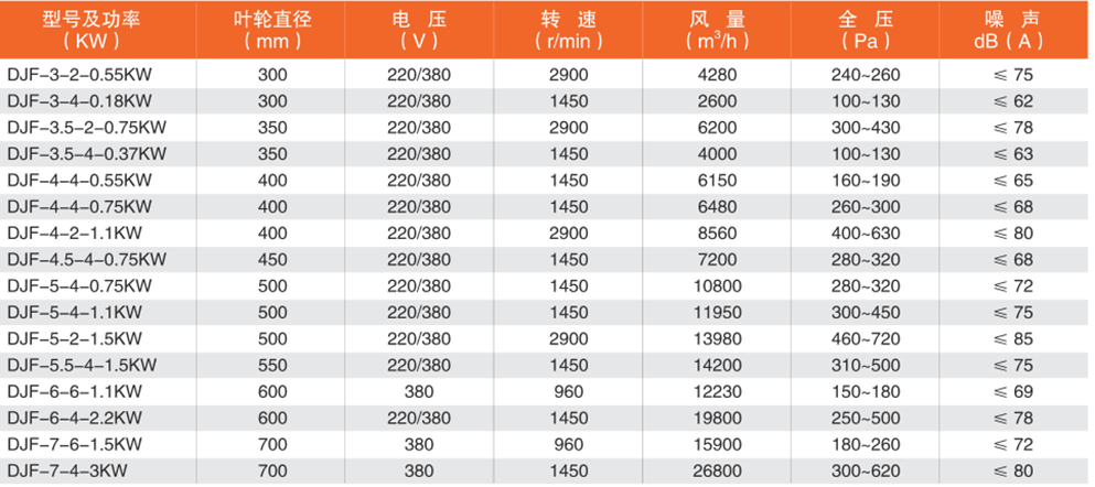 DJF导流式耐高温防油防水轴流通风机,是我公司通过模型反复试验研究,确定风机翼型,采用扭曲型叶片、高轮毂比、低风阻电机支架以及最佳叶棚参数,并使用防爆专用电机,结构上减少了流动损失,又增强了叶根处的强度,避免了叶片断裂的现象。解决了现有轴流风机风压较小和风量不均匀的问题,配套全铝高效可调节风叶,风压比普通风机大30%以上。该风机广泛应用于烘烤配套设备、工厂及建筑物的室内通风换气,其高温电机可在环境温度120℃内长期运行.