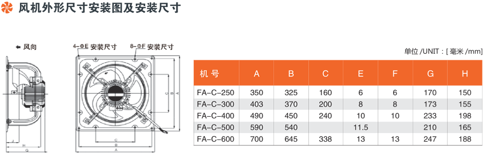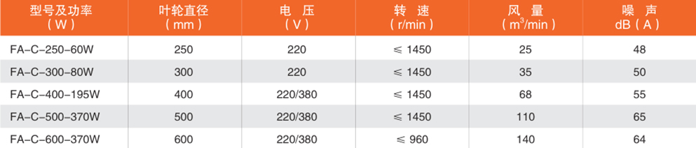 FA-C型高效能超低噪声排气风扇是本公司多名工程师经过长达一年的潜心研制并通过无数次试验,终于成功推出的一款高效能超低噪声排气风扇。它具有日本三菱电机生产的排气风扇一切优点,而且比三菱电机更加节能,风力更大。其技术达到国内领先水平,能长时间连续运转1000小时以上。电机采用铝合金压铸,有效的减少电机负荷、降低电机温升,延长风机的使用寿命;使用环境温度在-20℃ ~65℃之间(不推荐直接用于厨房排油烟)。广泛用于酒店、军工、机械、冶金、烟草、粮库等行业的车间、仓库、办公室等场所的防暑降温和通风排气。